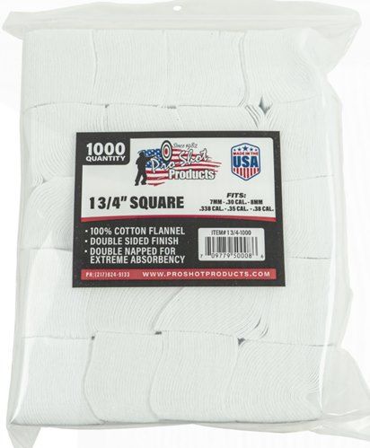 The fact is well-known that nothing surpasses 100% COTTON FLANNEL FABRIC for purposes of absorbing foreign matter and residue, and in turn carry it through the BORE with the LEAST amount of abrasive contact to the barrel’s rifling. Pro-Shot's cleaning patches provide Maximum Cleaning Power and Barrel Protection! Clean Faster, Easier, and Protect your barrel with Pro-Shot 100% Cotton Flannel (finished both sides) Cleaning Patches!