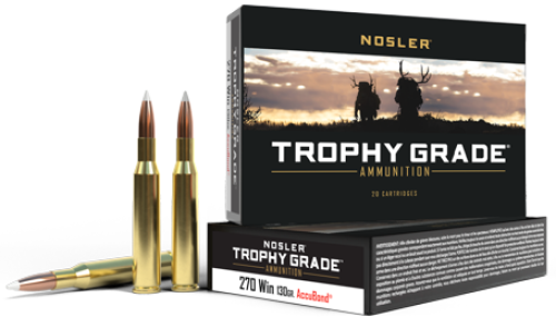 Nosler Trophy Grade ammunition is loaded with Nosler AccuBond bullets. The AccuBond unique white polymer tip assures accuracy and smooth chambering, while the boat-tail base at the rear of the bullet acts as a platform for large diameter mushrooms. Designed for accuracy near or far, Nosler’s Trophy Grade ammunition provides undeniable reliability.