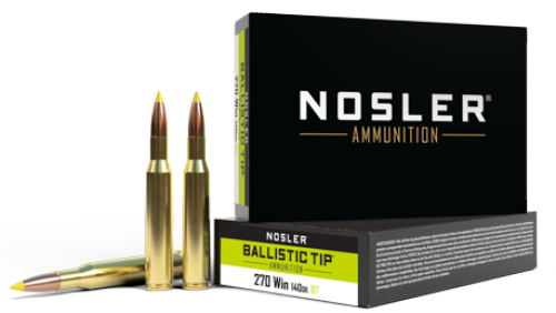 Loaded with a 140gr Spitzer Ballistic Tip® Hunting Bullet and Nosler® Premium Brass