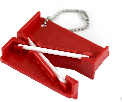 The Mini Crock Stick® Sharpener with key chain is a compact, lightweight and versatile knife sharpener and fish hook sharpener. It features two removable alumina ceramic sharpening rods that are easily