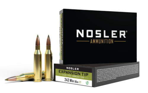 Loaded with a 90gr Spitzer E-Tip Bullet and Nosler Premium Brass Nosler E-Tip ammunition is loaded with lead-free, Nosler E-Tip hunting bullets. Meeting all lead-free hunting regulations, Nosler’s E-Tip bullet provides exceptional stopping power and peerless penetration over a broad spectrum of impact velocities, rivaling even the highest quality lead-core bullets. The bullet’s boat-tail configuration combined with the streamlined polymer tip assures long-range performance, making it a favorite amongst those desiring lead-free hunting ammunition.