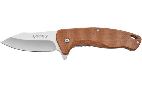 The Camillus Arvo 7.5″ Assisted Open Knife features a rugged, 3″ 420 stainless steel blade with a HRC of 52-55. The Arvo also has a robust, Micarta handle. Made of an extremely durable makeup of linen layers soaked in resin, then highly compressed and baked, the handle will be impervious to moisture or liquid. Micarta is used in many of our knives as well, providing you with the strongest and most rigid handle we offer. With the added bonuses of our lifetime warranty, assisted opening function, and fine liner lock system, the Arvo is prepared to go the distance with you.